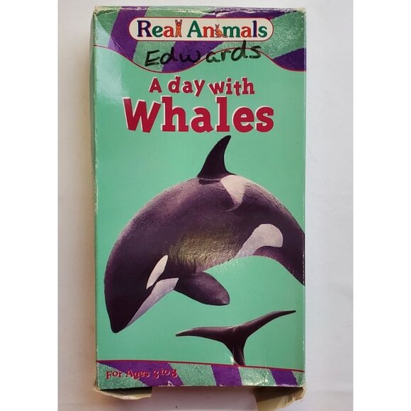 Experience the majestic world of whales with the "Real Animals: A Day With Whales" VHS tape from 1995 by Warner Vision. A cherished classic for animal lovers.