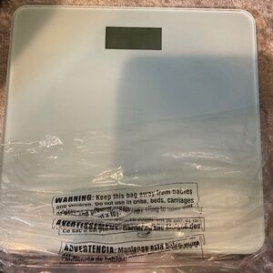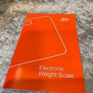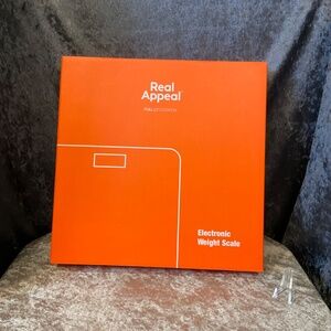 Real Appeal Electronic Body Weight Scale. Weighs in lbs, kg, or st. Automatic off switch. Capacity is 550 lb or 250 kg. Low battery and overload indicators. New in box. Never used.