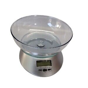 Real Appeal Silver Digital Electronic Food Scale W/ Clear Plastic Bowl - NIB