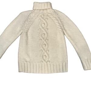 Real Clothes Women’s Large Cable Knit Turtleneck Sweater in Ivory Wool Blend