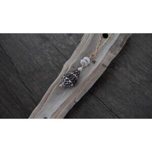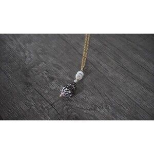 Embrace island vibes with this Real Cone Shell Necklace, featuring a natural black and white seashell on a dainty gold chain. Perfect as a boho surfer gift or a tropical vacation accessory, this unique piece adds a touch of the ocean to any outfit and makes a lovely gift for beach lovers.