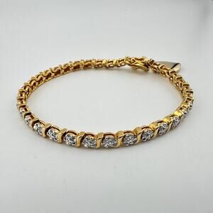 Real Diamond Chip Prime Art & Jewel Gold Plated Two Tone Tennis 7” Bracelet