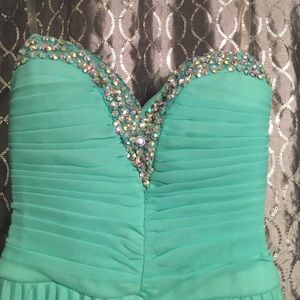 Beaded , a little stained at the end but it's long so you can't notice . IN GREAT SHAPE!