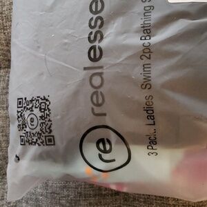 Real Essentials 3 Pack of Floral, Pink Pattern and Solid Black Bikinis Size M