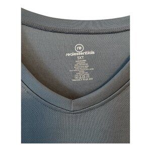 Upgrade your basics with this set of three ultra-soft, breathable performance V-neck shirts by Real Essentials. Made of 100% polyester with a smooth finish and moisture-wicking properties, these tees are ideal for casual wear, lounging, or workouts. Set includes two slate blue shirts (one in 5X and one in 5XT for extra length) and one black shirt, all in generously oversized fits.
