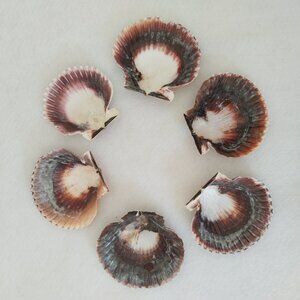 Real French Scallop Shell Serving Dishes Set of 6 Dinner Party Seafood Colorful. These are natural colored seashells (not painted) and show imperfections and broken edges. Please see all pictures. Sizes may vary.