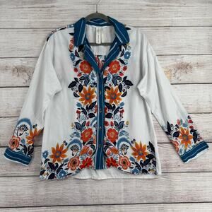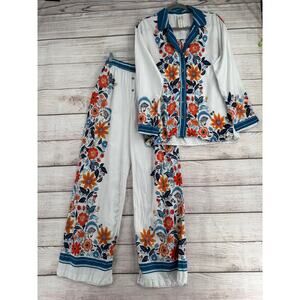 Item: Real Fun Wow x Anthropologie Floral Print Pajama Set Womens Small White Blue