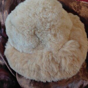 Real Fur Tan Bucket Hat with Terry Cloth Lining (Shearling?)