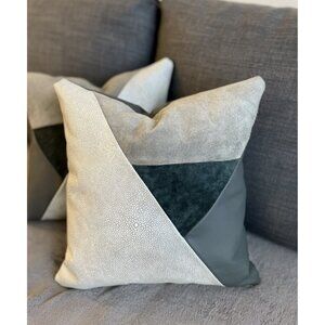 Real Genuine Leather Pillow Cover - Sofa Cushion Case - Decorative Throw Grey US