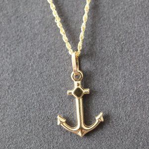 Real Gold 18K Yellow Gold Anchor Pendant Necklace Fine Jewelry