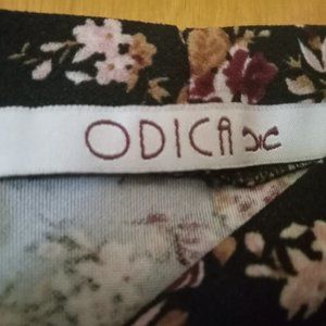 This dress is one I bought from Rome a long time ago, which is adorable. Unfortunately, I can no longer fit into it. The brand says ODICASE and I am guessing that is the company that made it. I would say it's a size medium or large. I was small built when I received it. It's black with little flowers all over it. It is sleeveless and best worn during the spring or summer.