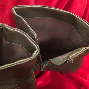 Worn only a few times, these soft leather ankle boots are not only comfortable but have a great edge of style. Heel height is 3". Besides a small scratch on the heel, they are in great shape with no tears or marks on the leather.