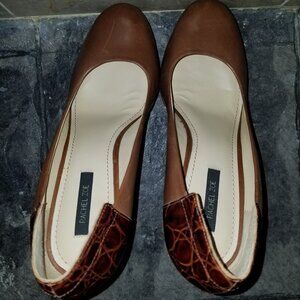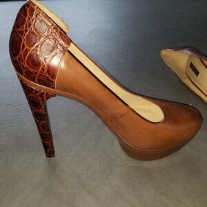 These are some beautiful platform pumps from Rachel Zoe. The size marked on them is 11 but they are very tight on a true size 11. I would recommend these for a size 10.5 and they should be a great fit. These are made of natural leather from sole to upper. The heel and the rear of the upper is wrapped in a snake skin look. I do not have the original box or the bag. They have a cute rounded toe and have very minor imperfections.
