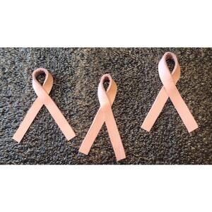 These are handmade leather breast cancer awareness ribbons with a tie tack pin. They are about 2" long. They vary in size because each one is made separately. The leather ribbon is 1/4" wide. Because they're made with genuine leather, they are very durable and will last a long time.