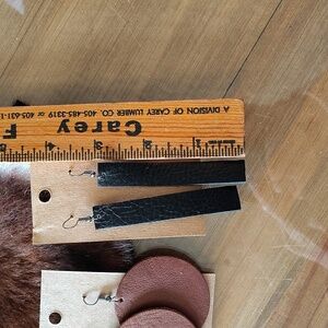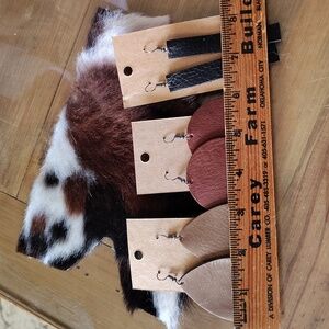 Real Leather Hide Earrings Set of 3 chestnut brown, light brown, and black