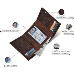 Real Leather RFID Trifold Wallet for Men Slim Credit Card ID Holder Gift