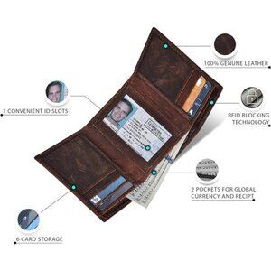 Real Leather Trifold Wallet for Men - RFID Wallets Slim 9 Credit Card Holder 2