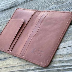 Real Leather Wallet Bi Fold Brown Card Holder Unisex Purse Handmade Long Wallet