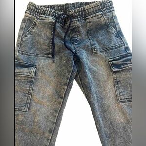 Real Love Kids, toddler girls size 6X blue cargo jeans with drawstring pull on waist and pockets. Good condition
