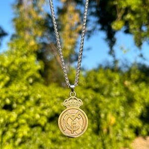 Elevate your everyday look with our Real Madrid Soccer Necklace, featuring the iconic team badge as a stylish pendant. Show your support for Real Madrid in sleek, versatile style with this soccer necklace. ⚽️