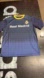 Real Madrid soccer jersey in navy blue with yellow accents. Features team logo and name.
