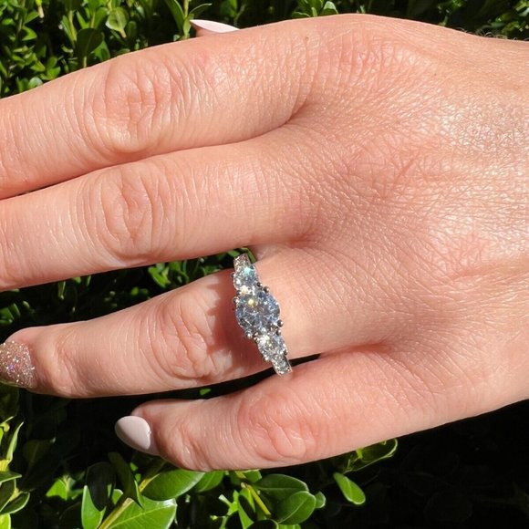 Real Moissanite Promise Engagement Ring Silver Three Stone VVS D Color