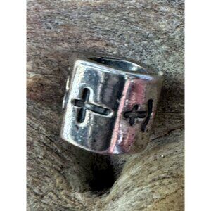 Real Pandora Sterling Silver 925 Charm Bead With Heart Cross Cutouts