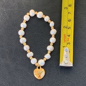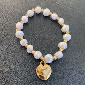Real Pearl & Gold Heart Stretch Bracelet - Celebrating Unique Beauty NEW