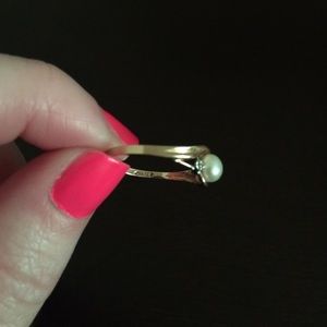 No faux stuff here. Genuine Pearl set in 10K gold. Ring size is probably a 6. Never got it sized down so didn't wear it. Smoke free and pet free home.