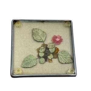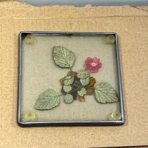 Real Pressed Flower UPSIDE Down Coaster Metal and Glass for Drinks Home Deco MCM