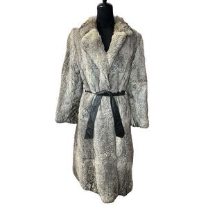 Real Rabbir Fur Long Grey beltrd Coat Small