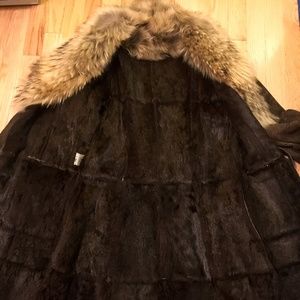Real Rabbit Fur Coat with Fox Fur Collar & Leather