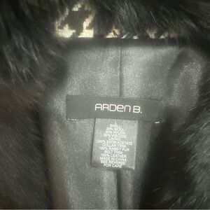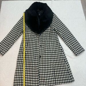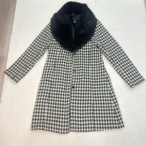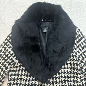 Real Rabbit Fur Trimmed Wool Blend Coat Arden B Y2K White and Black Size Large