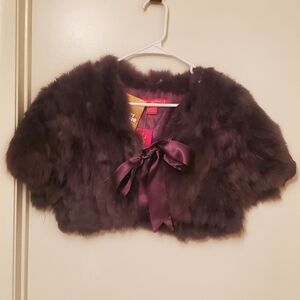 So cute, real rabbit short fur jacket, wear with jeans, skirts, great over prom dresses. Tag says XL, but runs small.
