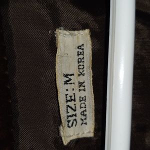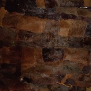 real rabbit fur jacket, pach work, vintage, coat with pockets, has a place for belt I never used one. different colors of brown, soft, says medium but I'm a large and it comfortable on.