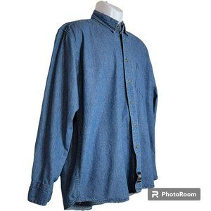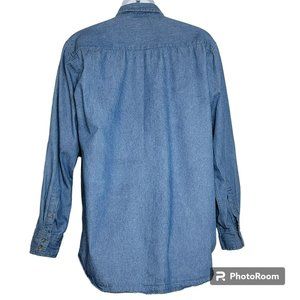 Real Ranch Workwear Shirt,Men L, Denim Blue Medium Wash Casual Button Down, EUC