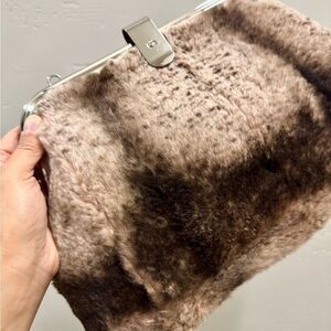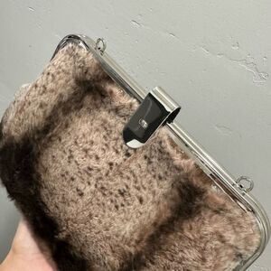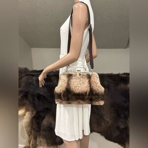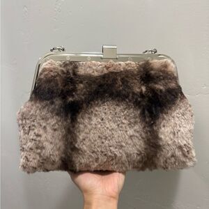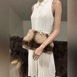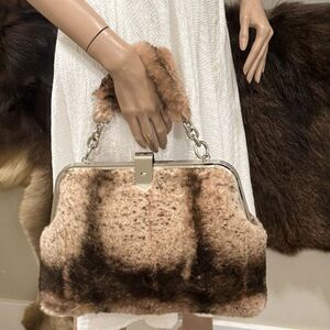 One of a kind! Retro fashion style. Uniquely beautiful fur purse! Handmade from genuine Rex rabbit fur with unique rivet metal frame. This large size purse holds a lot, spacious enough for your phones, wallet, cosmetics, compact umbrella, keys & other items that you may need.