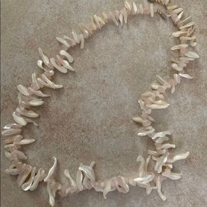This unique shiny necklace is constructed of real shells. ๐ง๐ปโโ๏ธ Each piece radiating a slight iridescence of the sea! Really cool addition to any jewelry collection that will be ๐ shore to return compliments! Vintage Mother of pearl stick collar necklace.