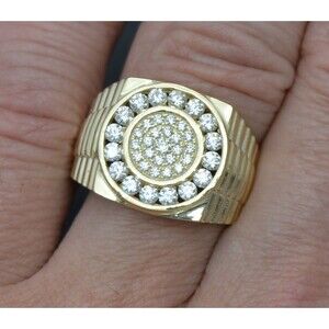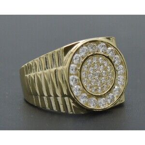 Real Solid 10K Yellow Gold 16mm Round Micro Pave Railroad CZ Ring 6gr ALL Sizes
