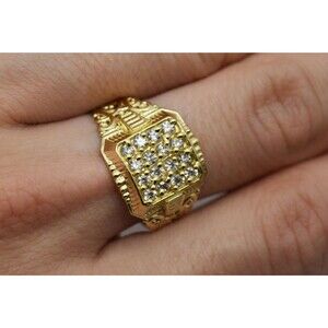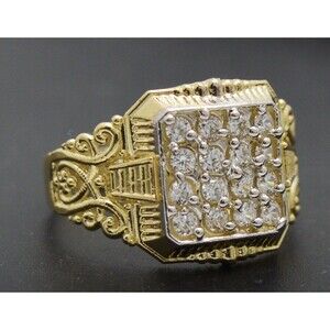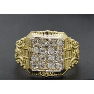 Real Solid 10K Yellow Gold Mens Pinky Square Ring CZ 14.3mm ALL Sizes