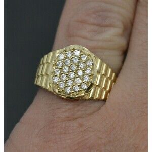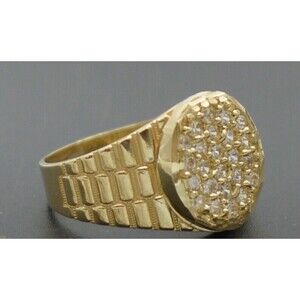Real Solid 10K Yellow Gold Mens pinky Railroad oval Ring CZ 13mm ALL Sizes