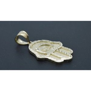 This beautiful Real Solid 10K Yellow Gold Shiny Hamsa Evil Eye Religious Charm Pendant 3.8gr is expertly crafted and designed with timeless elegance. The stunning details and solid 10K gold make this piece a must-have. Perfect for anyone looking for protection and to ward off negative energy, this lucky charm is sure to be a treasured keepsake for years to come.