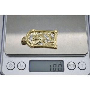 Real Solid 10K Yellow Gold Shiny Medallion St. Barbara Diamond Cut Pendant 10.gr