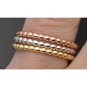 Real Solid 10K Yellow White Rose Gold Ball Shape Stackable Ring