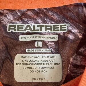 Real Tree Waffle Knit Henley Shirt Mens Large Orange Hunting Outdoors Stretch