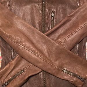 Color? Would you say this jacket is light, as in the first pic, or more in the darker brown tones? Thanks.😊