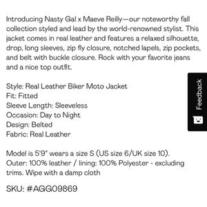 Real leather jacket from Nasty Gal. Never worn, new with tags. Size 10, fits XL. I bought it b/c in the sizing it said size 10 is a L, but it’s too big for me and is more like an XL or even 1XL.