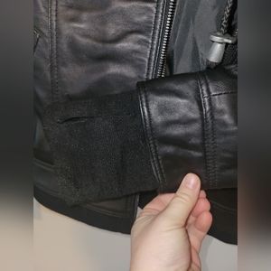 never worn genuine leather jacket with removable hood insert.