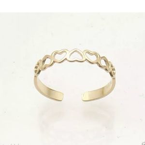 Cute Adjustable Open Heart Design Toe Ring Solid Real 10K Yellow Gold