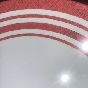 Cute striped melamine plates from Real Simple. Dishwasher safe. Used once! In new condition.